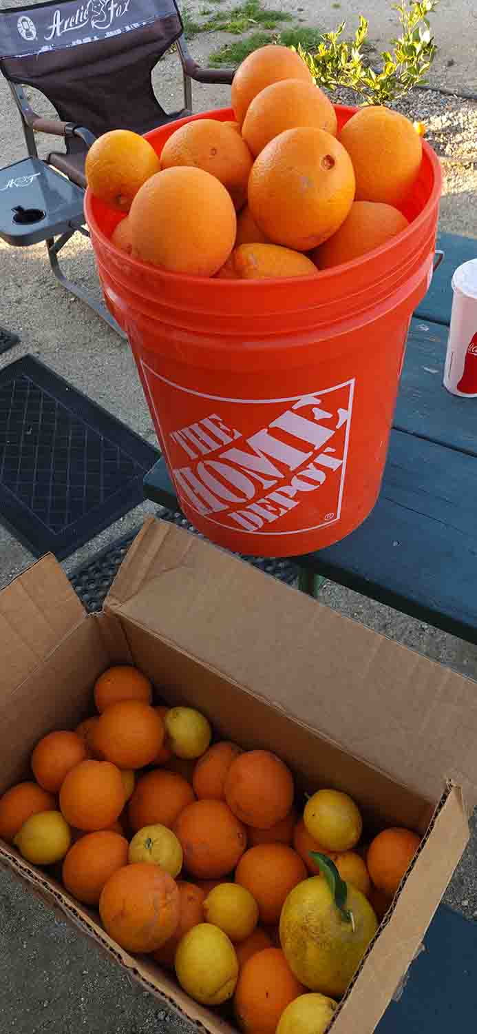 Well today was the big transition day, from the dry warm aired climate of the SW desert, to the more humid environment of the pacific coast. We headed out of Parker fairly early in the morning and started our journey west. First stop? A fuel stop BEFORE we crossed the California border!!! It was a nice day, but the westerly winds were pretty intense, especially going from Barstow across the pass before dropping into the valley. We had made prior reservations for Orange Grove RV Park just east of Bakersfield as we had heard so many great things about it. Our impression was not that great, impersonal treatment at check in, just ho hum grounds, plus the pool was closed. We're nit picking here, but definitely not the caliber park that we expected. BUT, the oranges were ripe on the trees, and they said take whatever you want to pick, so we did fill two five gallon buckets with oranges while we were there. The 10 gallons of oranges turned into 2 days of canning marmalade and jelly the day after we got home. The First full day here we went into Bakersfield to visit the Kern County Museum. Another half day plus type of place, which we covered from end to end. Wow, lots of very cool things, and basically an area that housed various restored buildings that had been moved from historical places around the area. The only thing that was not open was the Black Gold exhibit, so that was kind of a downer as we really were looking forward to it. But it still was a great place and we very much enjoyed ourselves! Next day we decided to just drive around the area, do some Geocaching, and see where we ended up. Well where we ended up was at the Bakersfield National Cemetery east of Bakersfield. Another inspirational find for us as it is a military cemetery, the kind of place that grounds you in a hurry. We arrived right as the procession for a funeral was forming, so we made clear of the road so we didn't interfere. We did talk to a few of the men that were preparing for their twenty one gun salute (who by the way were very enthralled with our truck), and they told us some stories of the history and future of the grounds. Very humbling place, and one we are glad we found to visit!