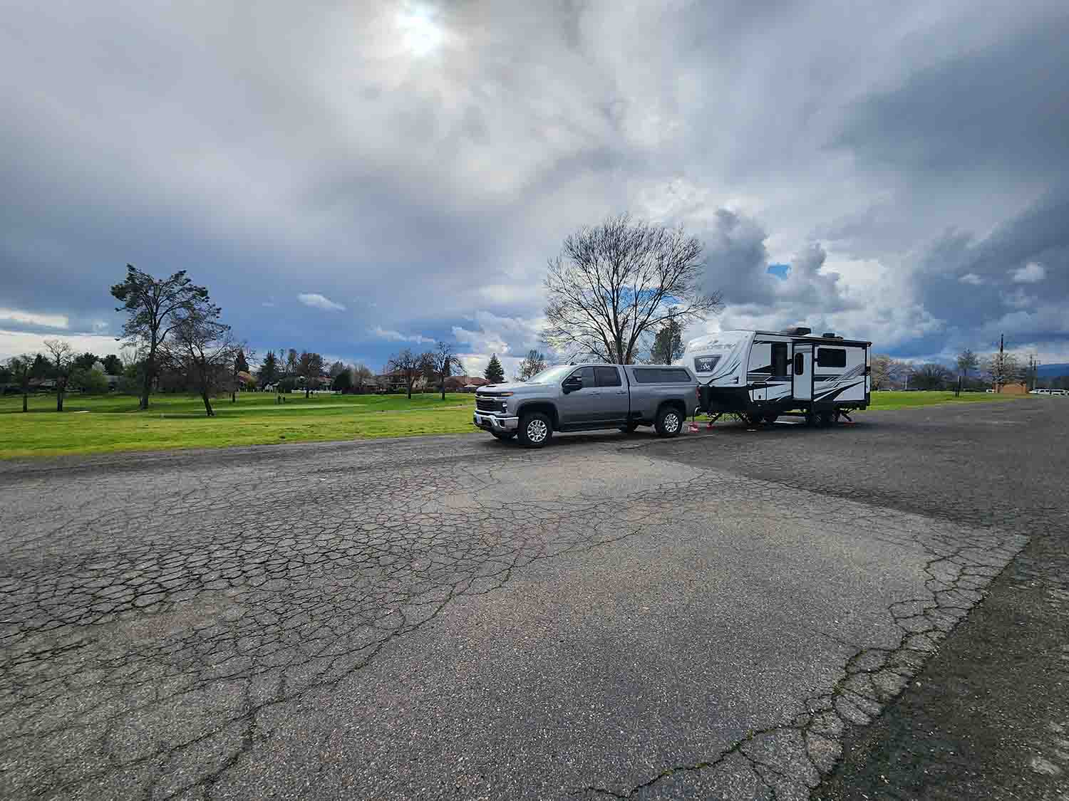 Tonight is our last night on the road, for this trip anyway! And as we started, the last night of our trip is at the exact same spot as the first night of our trip. Back to Gold Hill Golf Club for another free night courtesy of Harvest Host. If you go back to Part One of this trip, this picture might look very familiar, except the weather was not 80 degrees and bright sunshine as our last stay was. We still had a GREAT early dinner at the 19th hole, and headed back to the trailer in between thunder and rain showers. We enjoyed (from the warmth of our trailer) watching golfers trying to play in the rain, and witnessed a few "nudged balls" when the other players were not paying attention. So quiet and peaceful here, very enjoyable, and did we mention.... FREE!!!