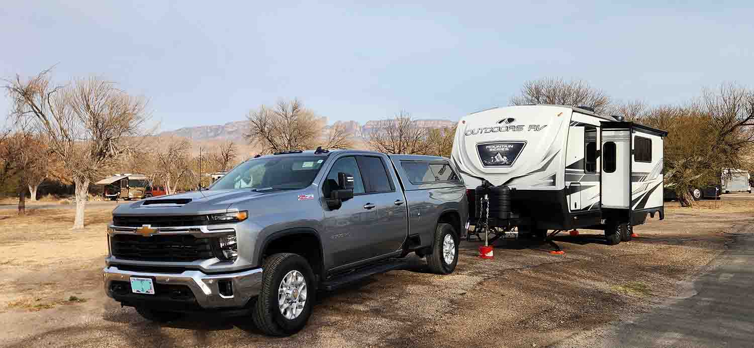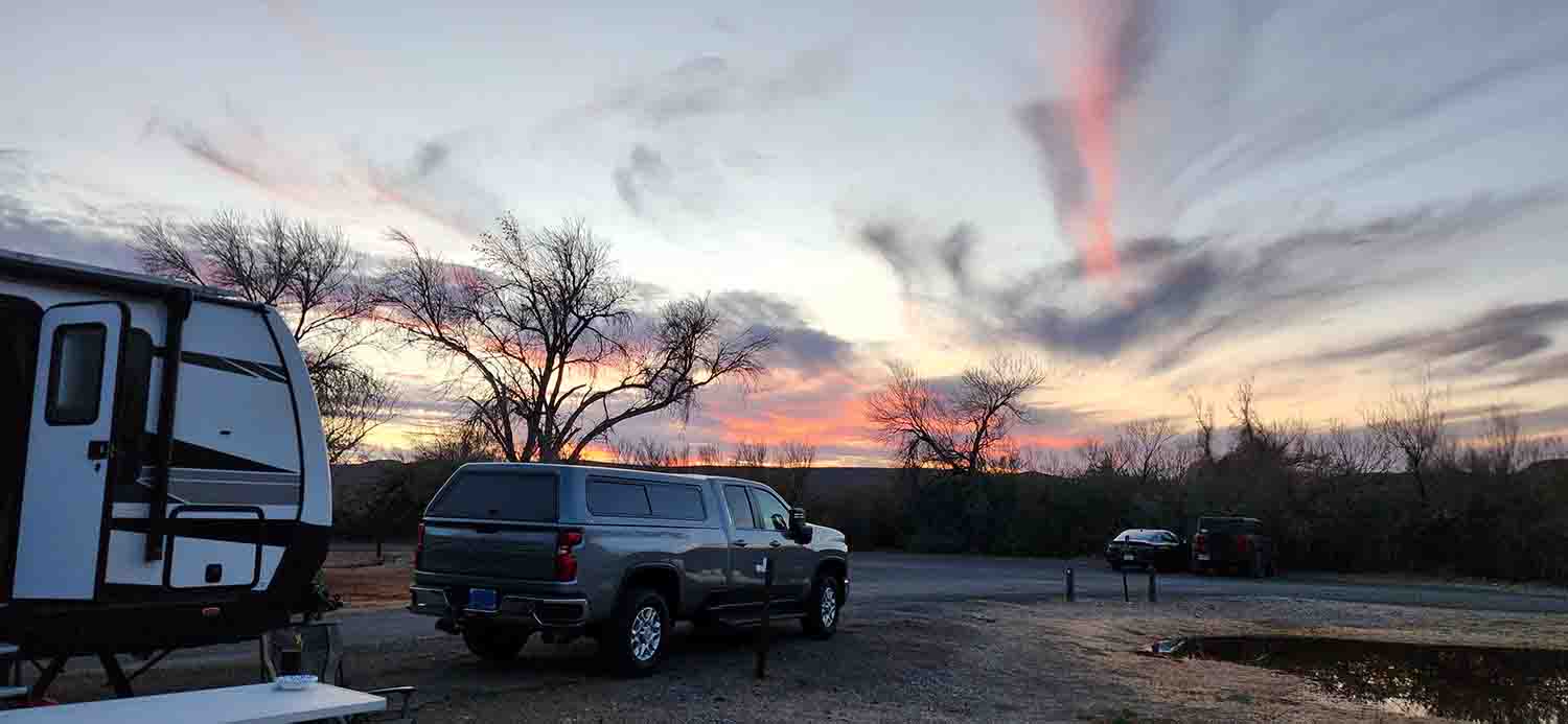 From Alpine TX it is a easy drive through Marathon (where you once again take a Righty Tighty) on hwy 395 going south to the north entry point of Big Bend. We sailed right through the entry point (using our Geezer Pass once again) and stopped to visit the visitors center there. Now I think most national parks (and state parks as well) utilize the volunteer method of staffing now a days, and everyone is usually really cheerful and outgoing. Big Bend was no different!!! We talked about an hour with the ranger and the volunteers and got a great idea of what we were in for, what our limitations would be (geezers you know), and the times it would take for each leg of our excursions around the park. Once we felt fairly prepared for the week ahead we took off south to Panther Junction, the hub of the park. Believe it or not, fuel prices were less here than around the Alpine and Marathon areas so we fueled up and also took advantage of the visitors area there as well. Then off we go for another 20 miles to our destination Rio Grande Village campground. We choose not to stay at the RV area as it was nothing but a parking lot overcrowded with /rv's parked right next to each other. Once there and saw how it all was laid out, we were so glad we made the decision to stay where we did. We were in site #68 which worked perfectly for us as there was nothing blocking the sun from our solar panels on the trailer, and actually had a great view around us.
