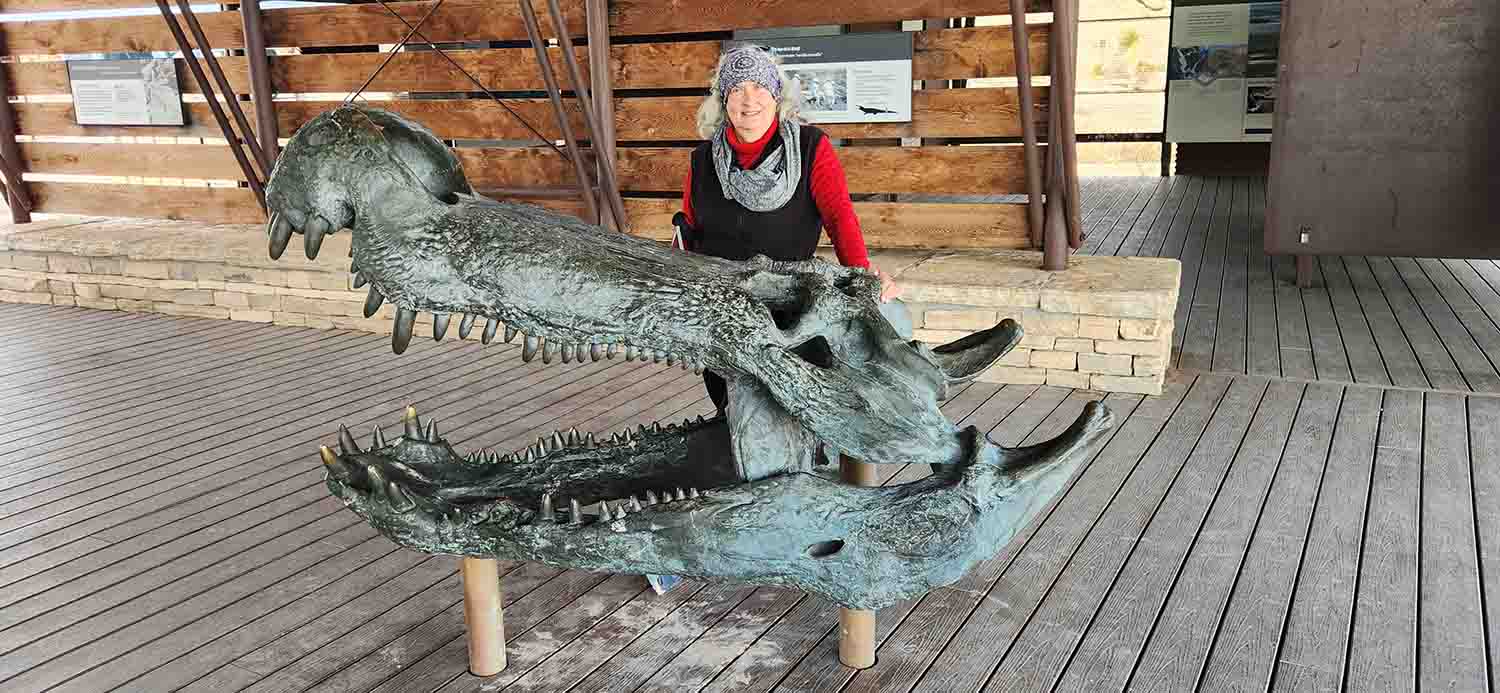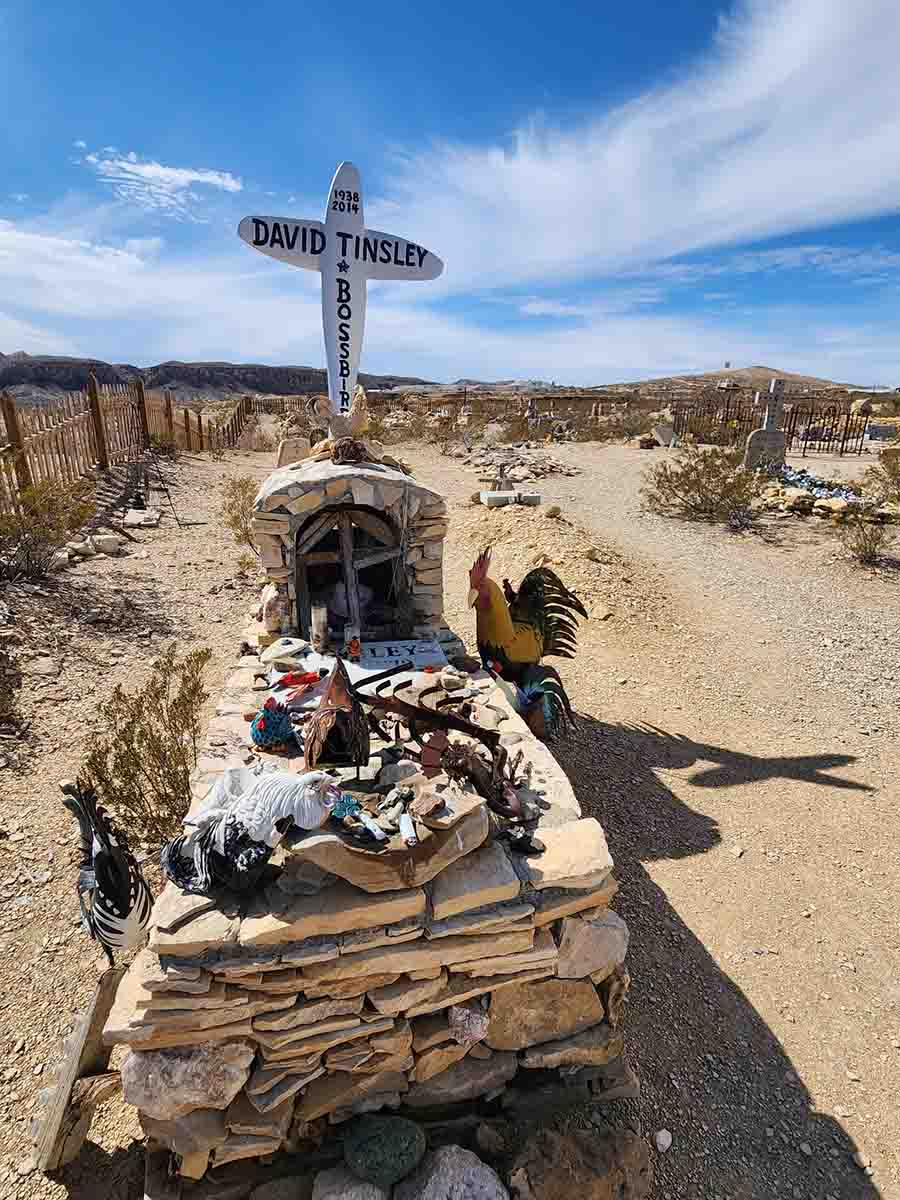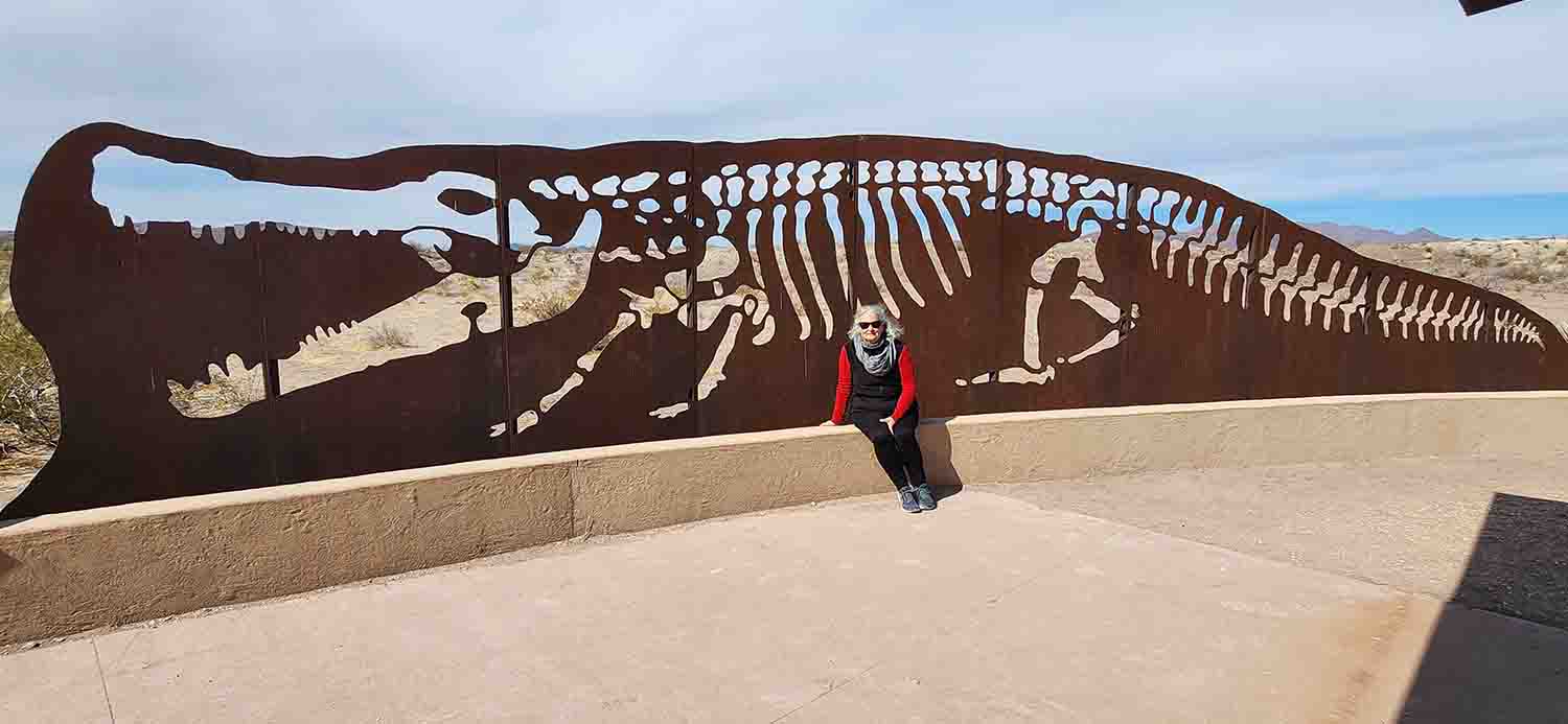 Next day, after our walk we take off back through Panther Junction and head north to the fossil exhibit area. The weather has changed and now it is cloudy but pretty calm winds. Temps still in the 70's so no complaints from us! Amazing to learn of the paleontology of this entire area. The early visitors had quite the excursions fossil hunting, and the discoveries they made were astounding. Big Bend was a tropical wonderland full of Steven Spielberg type creatures in real life! The downside is that with the quality of modern human creatures now inhabiting this area, nothing but recreations are displayed in this exhibit because of vandalism. Still the immensity of what once roamed here is mind boggling... Next day we drove to the west entrance of the park to Terlinqua for some Geocaching (of course a multi in a cemetery) and exploring. The surprise of this tiny little community was the Wright Hardware Store! Wow screaming memories of Vance's Hardware in Corvallis MT when we lived there years ago! So much packed into such a small space, but still no rubber silicone lubricant for our toilet seal (One of two things that let us down with the new trailer during the entire 7 week trip).....