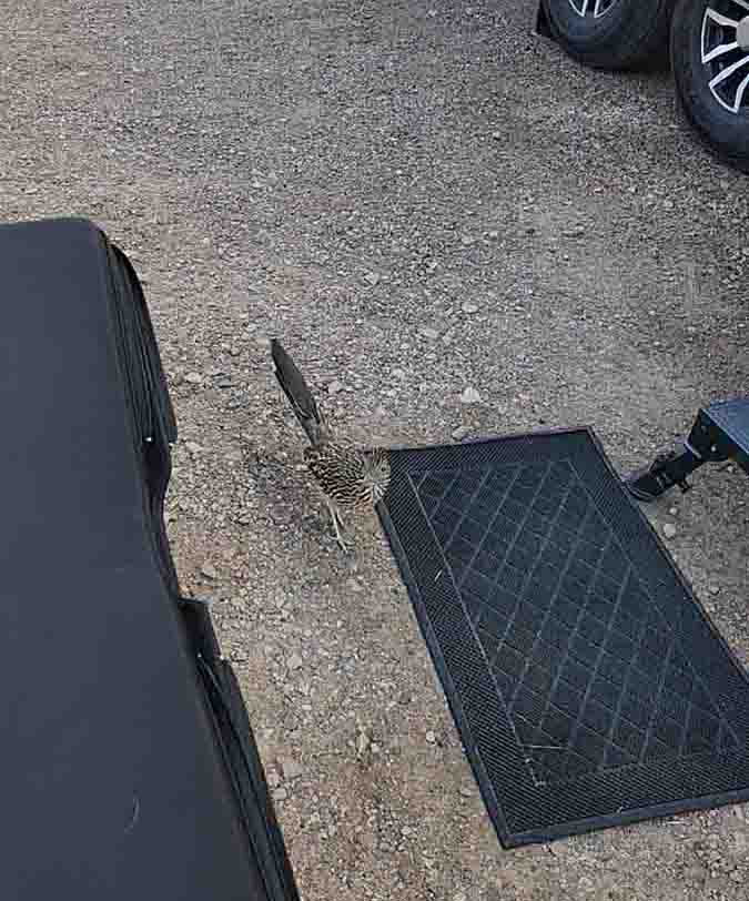 After returning to Rio Grande and enjoying a quiet sit in the sunny weather, we had a visitor to our campsite... A FRIGGIN WASKELLY ROADRUNNER!!! Still not the money pic, but still, I about stepped on the dang thing getting out of the trailer!